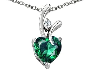 925 Sterling Silver created heart shaped emerald pendant crafted in 925 Sterling Silver Dimensions: Width: 0.25 Inches Length: 0.75 Inches. 1 Stone 1.90 Carats 8 mm Heart Shaped simulated emerald Color: Green Clarity: Clean, 1 Stone 0.05 Carats Cubic Zirconia Color: Colorless Clarity: Clean Free 18 inches chain included . Finejewelers Style Number: 26730.