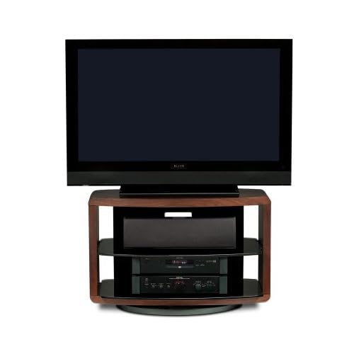 Valera elegantly frames your home theater system with a unique, semi-enclosed design featuring richly finished hardwood veneers. Its center shelf of grey-tinted tempered glass is adjustable in height, and the back panel features integrated wire management to keep cables neatly under control. An integrated swivel base can be set in one of three positions- revolving 360-degrees, swiveling 30-degrees or locked in place. Recommended for use with Flat Panel TVs up to 42". Assembly required. Dimensions: 21.25"H x 33"W x 18.75"D
